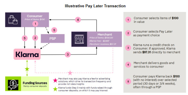 Klarna’s long-term ambition is to become the de-facto global digital financial assistant designed to improve how consumers spend and save. That sounds like a word salad. In simple P14 terms, KLAR intends to continue milking merchants by delivering consumers who spend more than those using traditional payment methods, tapping into one of the largest customer bases of the next generation of spenders, while offering its own consumers low or no-cost services in return. Perhaps the best way to understand this model is to examine how the company makes money, but first we must understand the crux of the business: BNPL.