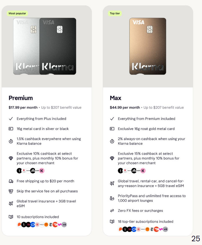 A persistent bottleneck in broader BNPL adoption has been the lack of rewards in a debit-first model. The new Premium and Max tiers attempt to solve this by decoupling perks from spending, without layering on punitive APRs. That is the pitch at least, and once consumers are on the Klarna card, the behavioral pull toward using Klarna more often is obvious. Investor aside, I am considering the card myself.
