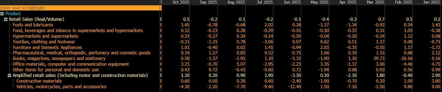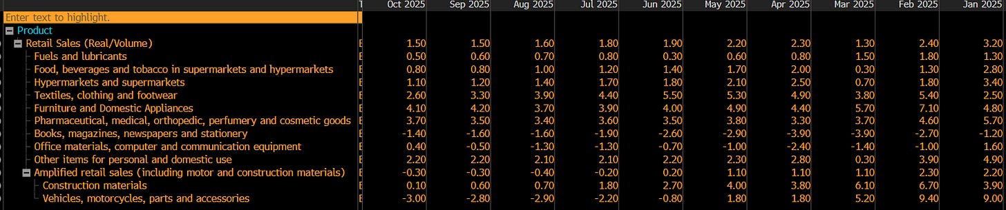 With the exception of a surprise upside print in October 2025, retail sales continue to exhibit a decelerating trend, with weakness most evident in big-ticket purchases, reinforcing that the cost of credit is the primary constraint.